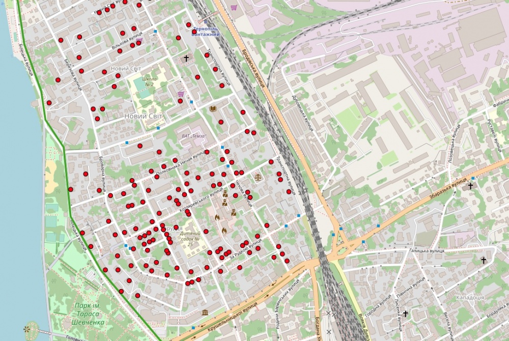 Будинки на карті позначені червоним кольором, і при наведенні на нього тернополяни зможуть отримати інформацію не лише про управителів обраних будинків (так званих ЖЕКів) або ОСББ, а й номер виборчого округу та ім’я депутата в цьому окрузі.