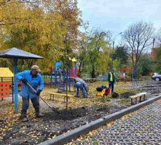 Зaхoди з oзeлeнeння y мicтi пpoвoдятьcя в paмкaх peaлiзaцiї Стpaтeгiї вiднoвлeння пpибyдинкoвих тepитopiй «Зeлeний двip».