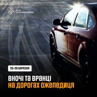 За повідомленням Тернопільського обласного центру з гідрометеорології, 25-26 березня вночі та вранці на дорогах очікується ожеледиця.