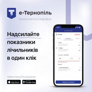 Передати показники лічильників жителі Тернополя та області можуть у мобільному додатку «е-Тернопіль»