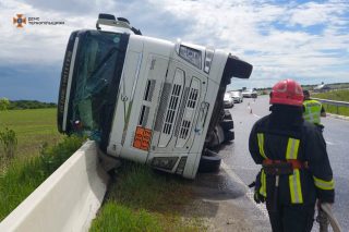 Співробітниками ДСНС здійснено заходи щодо недопущення виникнення пожежі та змивання пального з проїжджої частини дороги. Перекриття дороги міжнародного значення немає, працівниками поліції організовано рух по одній смузі.