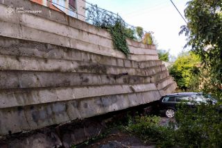 Дану підпірну стіну за адресою вул. Квітова, 15-А будувалася на замовлення та за рахунок коштів ОСББ у 2016 році. За попередніми результатами огляду експерта, руйнування відбулося через неякісне виконання робіт, недотримання проекту, у конструкції відсутнє належне армування підпірної стіни та не було передбачене водовідведення дощових вод. Руйнування цієї підпірної стіни продовжується, відтак вона потребує демонтажу відповідно до спеціального проекту, оскільки висота аварійної стіни понад 6 метрів.