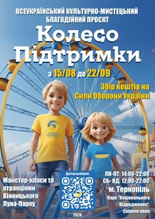 З 15 серпня у тернопільському парку Національного відродження відкривається культурно-мистецький благодійний проект «Колесо підтримки», де для відвідувачів працюватимуть атракціони Вінницького луна-парку та різноманітні майстер-класи.