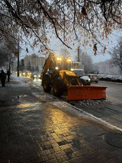 Окрім механізованого очищення, з раннього ранку працюють двірники, які розчищають зупинки, пішохідні переходи та підходи до будівель.