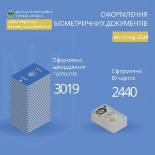 Підрозділи міграційної служби Тернопільщини у листопаді оформили 2440 паспортів громадянина України у формі ID-картки та 3019 паспортів для виїзду за кордон. Ажіотажу щодо оформлення біометричних паспортів не спостерігаємо.
