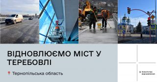 Міст у Теребовлі на трасі М-19 Доманове – Ковель – Чернівці – Тереблече відновили після багаторічної аварійності і відкрили для проїзду у грудні минулого року. Зараз тривають підмостові роботи, які не впливають на міцність конструкції, однак потрібні, щоб запобігти в майбутньому пошкодженню та руйнуванню основних елементів мосту та підходів до нього. Нагадуємо, міст побудовано 90 років тому і перебував в аварійному і руйнівному стані. Будівельники його повністю демонтували і звели з нуля нову конструкцію. На державних дорогах Тернопільської області – це перше велике будівництво з 2008 року.