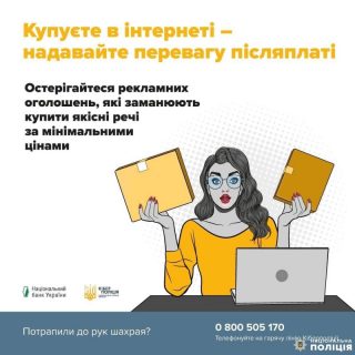 Поліцейські вкотре нагадують громадянам бути обережними під час онлайн-покупок: не здійснюйте передоплату неперевіреним продавцям, перевіряйте відгуки та надавайте перевагу оплаті після отримання товару.