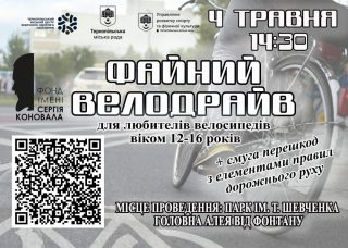 4 травня у Тернополі відбудеться велопробіг «Файний велодрайв», в рамках вшанування пам’яті Героя України Сергія Коновала. До участі запрошують дітей віком від 12 до 16 років.