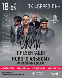 Вже цієї неділі, 18 травня, тернополян запрошують відвідати концерт українського гурту СКАЙ, який відбудеться у Палаці культури «Березіль», початок – о 18:00.