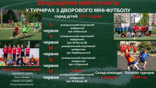 Запрошуємо всіх юних любителів футболу взяти участь у турнірах з дворового міні-футболу, які відбудуться в червні.