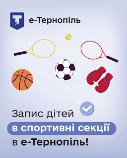 Довідково: Загалом, у Тернополі функціонує сім дитячо-юнацьких спортивних шкіл, які пропонують 21 вид спорту. Батьки можуть записати свої дітей на плавання, шахи, самбо, дзюдо, стрільбу з лука, бокс, карате, греко-римську боротьку, фристайл (могул), сноубординг, вітрильний спорт, веслування на сайдарках та каное, фехтування, гімнастику, футбол, велоспорт, вільну боротьбу, баскетбол на Порталі мешканця «е-Тернопіль» та у мобільному застосунку «е-Тернопіль».