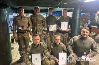 Поліцейським, котрі несуть службу у складі Сил безпеки та оборони та виконують бойові завдання із захисту територіальної цілісності України з нагоди Дня захисників та захисниць України вручено державні та відомчі відзнаки.