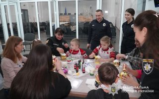 У Головному управлінні Національної поліції Тернопільщини зібралися діти, дружини, батьки поліцейських, котрі не повернулися з війни, аби поспілкуватися, підтримати один одного і навчитися своїми руками створювати святковий декор – розмалювати новорічні кульки та виготовити різдвяного павука.